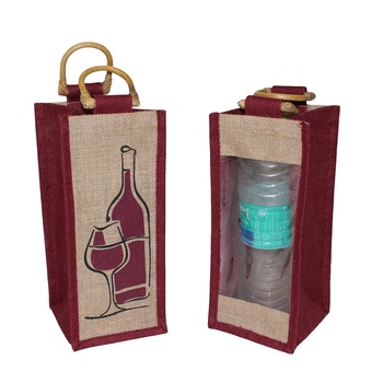 ของขวัญช้อปปิ้งถุงปอกระเจาชายหาดหน้าต่างตาข่ายดูผ่านที่จับตัวเอง PP ลามิเนตถุงขวดปอกระเจาธรรมชาติ